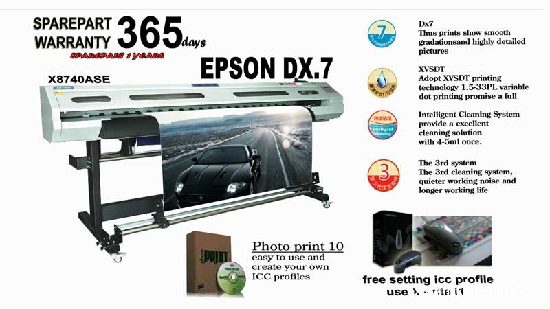 Brand new dual 4 colors mode print, adopted Epson Dx7 printhead which promise higher print speed and larger print resolution with gorgeous image and natural colors.The ideal 1880mm maximum print width can satisfy your customer with variable media and wilder print width.Even more, you can choose single printhead or double printheads on different demands.